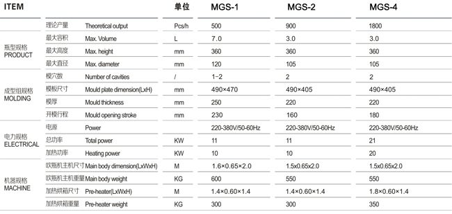 l.Adopt special electronic controlling circuit for heating; high efficiency in simultaneous controlling one lamp or more; lower power consumption. 2.Adopt the theory of heat transfer and feedback while designing the shape and thikness of preform. 3.The preform will be heated evenly, not be influenced by outside environment. 4. Cooling system with cold air cycle ensures same heat exposure of internal and external surface of the bottles. 5.The air exhaust system designed by CAD can guarantee the deviation of heating furance temperature +/-1 degree. 6.Air circuit system consists of movement and blowing so as to meet the needs of different air pressure, also to provide stable high pressure for blowing different shapes of big capacity bottles. 7.The system is equipped with silencer, connecting rod and articulated refueling devices. 8.Two modes of operation: semi-automatic mode and automatic mode. 9.Small size, low investment one person enough to operate, simple and safe.